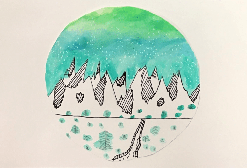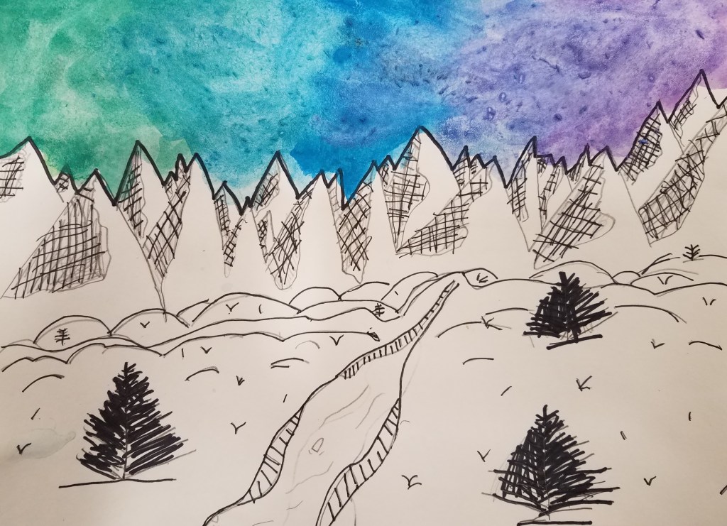 “Winter Mountains”, Owen Eske, Ink and Watercolor, 5th, Rockwell, NFS