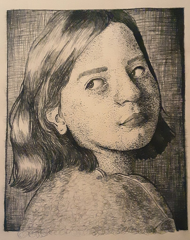 “Self-Portrait” Elizabeth Garcia Charcoal on Paper 9th, FAHS $80